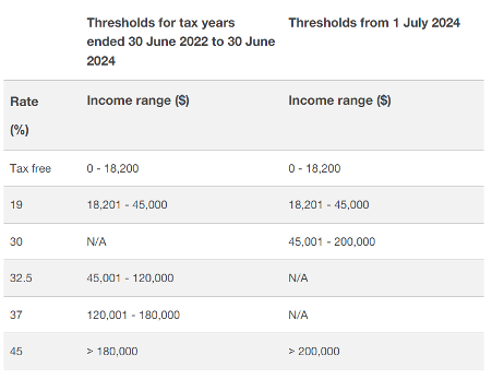 The Stage 3 personal income tax cuts remain unchanged and will commence in 2024-25 as already legislated. Thresholds as follows:
